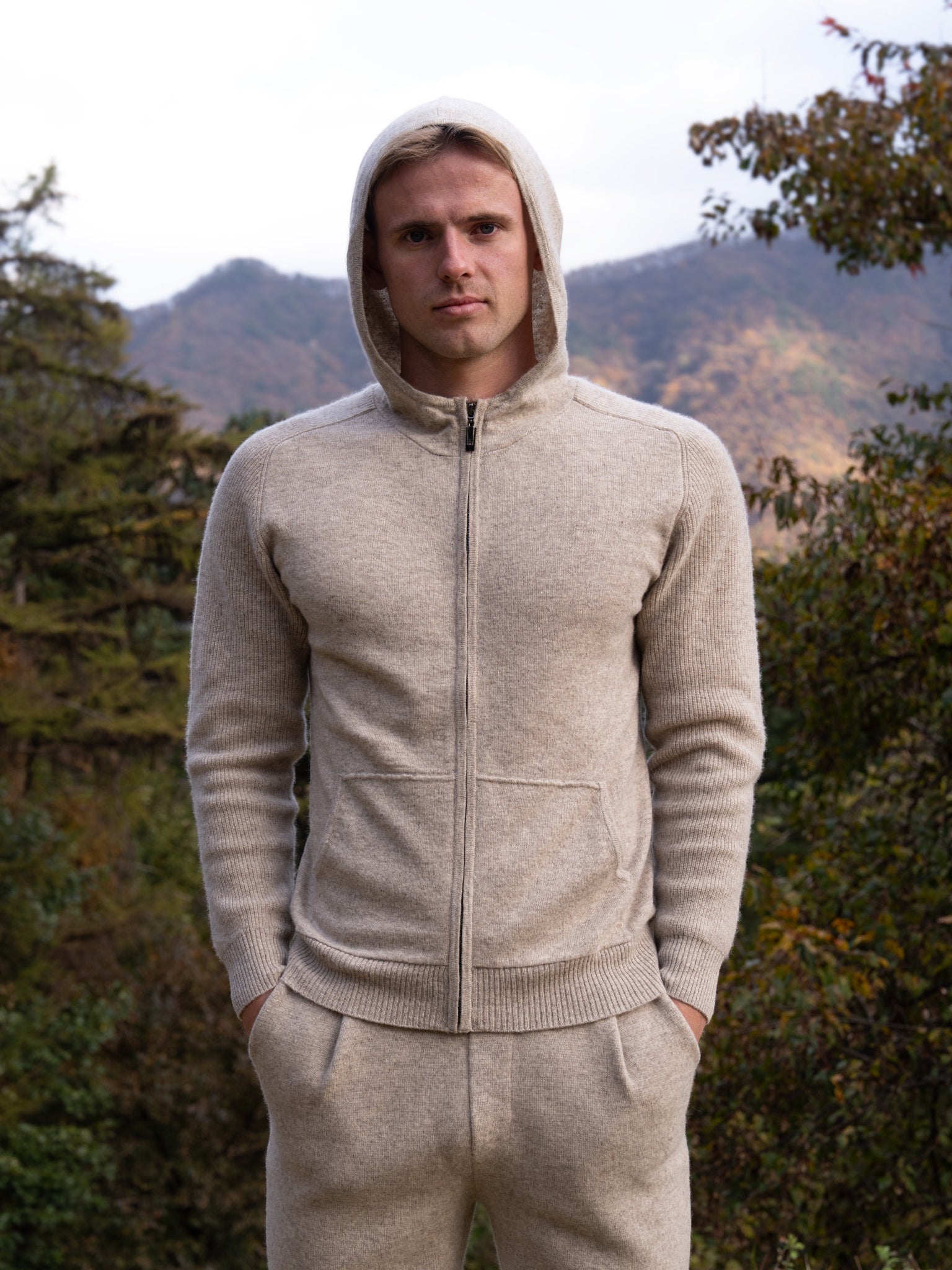 100% 순수 캐시미어 울 블랜드 후드 집업